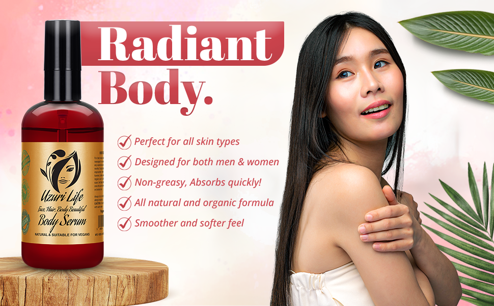If you desire skin that appears healthy, the Body Serum from Uzuri Life is an ideal choice. Its exclusive combination of natural components works effectively to enhance your skin's texture, resulting in a smoother and softer feel that lasts.